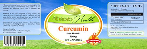 Curcumin (95% Curcuminoids) | Potent Anti-Inflammatory and Antioxidant | 100 Capsules 500mg per Capsule by Absorb Health