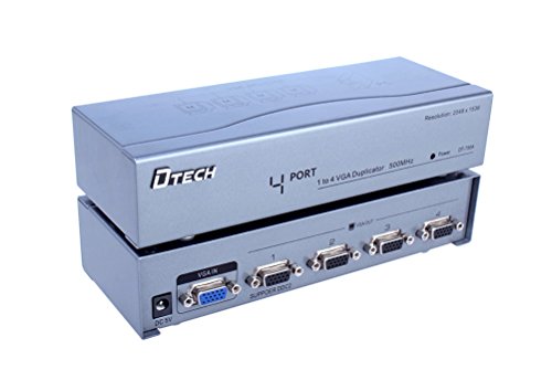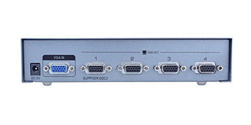 Split a single video source to up to 4 separate VGA monitors, simultaneous display. Supports VGA, XGA, SVGA, UXGA video signal.