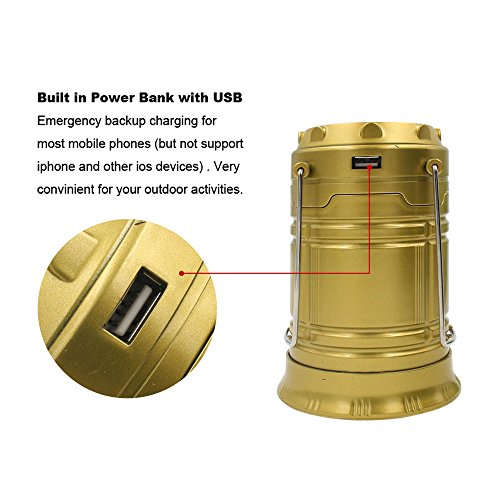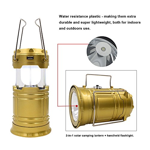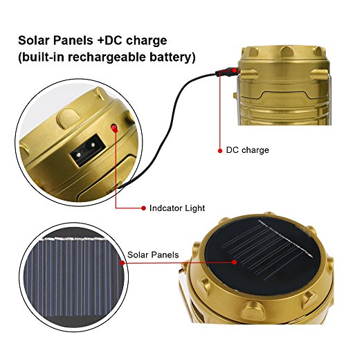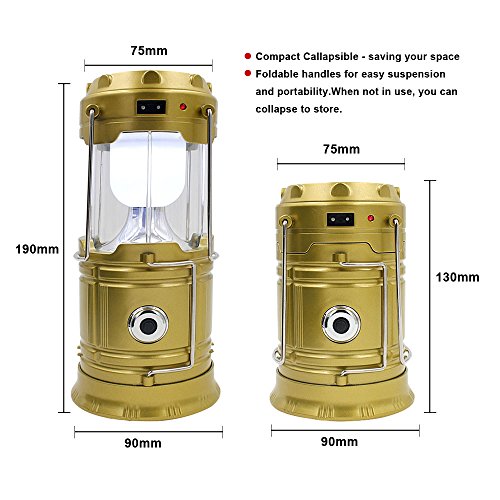 Compact Callapsible: This is the 2-in-1 solar rechargeable camping lantern and handheld flashlight. Use as camping lantern - Foldaway handles for easy suspension and portability. When not in use, you can collapse to store. Use as flashlight - a sperate handle and switch (in the bottom). You can use it in both modes at the same time.