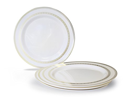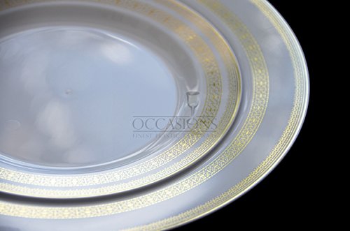 " OCCASIONS " 120 PACK, Medium Weight Disposable Wedding Party Plastic Plates (Dinner Plate, Princess White and Gold)