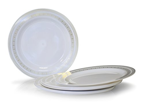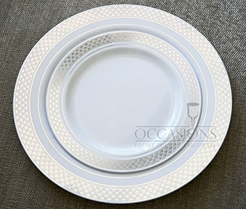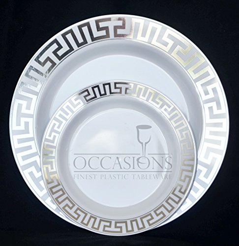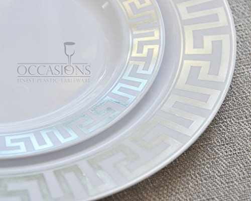 " OCCASIONS " 120 PACK, Heavyweight Disposable Wedding Party Plastic Plates (Dinner Plate, Hollywood White and Silver)