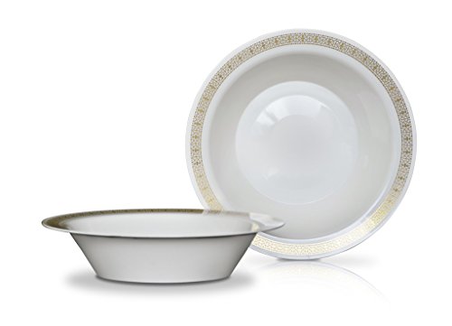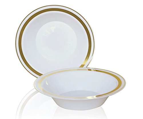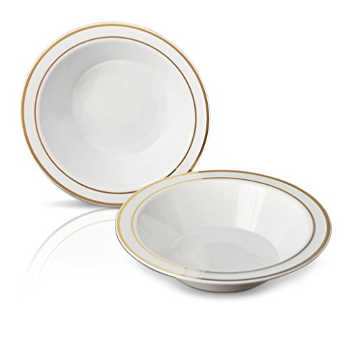 " OCCASIONS " 120 PACK, Heavyweight Disposable Wedding Party Plastic Bowls (Soup Bowl, Florence White / Gold)