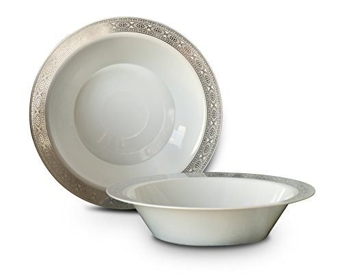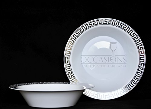 " OCCASIONS " 120 PACK, Heavyweight Disposable Wedding Party Plastic Bowls (Soup Bowl, Florence White / Silver)