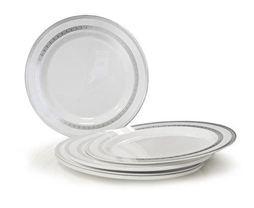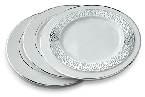 " OCCASIONS " 120 PACK, Medium Weight Disposable Wedding Party Plastic Plates (Dinner Plate, Princess White and Silver)