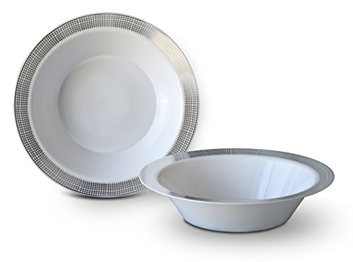 3550x120 " OCCASIONS " 120 PACK, Heavyweight Disposable Wedding Party Plastic Plates (14oz Soup Bowl, Milano White / Silver)