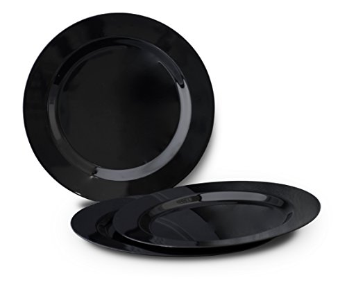"OCCASIONS" 120 PACK, Heavyweight Disposable Wedding Party Plastic Plates (9'' Luncheon Plate, Plain Black)
