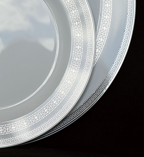 "OCCASIONS" Disposable Plastic Plates, Lace Collection, White/Silver (120 pieces, 10.5'' dinner plate)