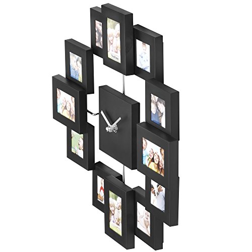 VonHaus 12 Picture Aluminum Photo Frame Wall Clock (Black)