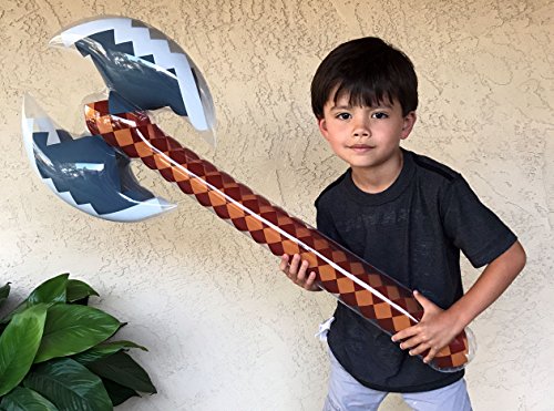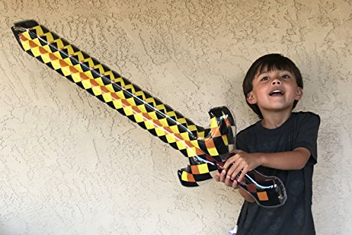 -. Feature : Ultimate sword and axe party pack for pixel craft play / 4 Swords (2 Yellow, 2 blue), 4 Axes (2 Grey/Brown, 2 Blue/Green) / Able to be inflated stiff enough to give a great battle feel and rigidity. Side of blades remain soft and bouncy so foes don't actually lose limbs. / Large and oversized. All approximately 37" long.