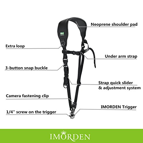 IMORDEN Camera Sling Shoulder Neck Strap for DSLR cameras IMORDEN Flash F-1 Camera Sling designed for people who engaged in photography work or amateur photographer. F-1 camera sling could easily connect your camera and hang it ready by your side. Free your hand while working and walking. Keep your gear safe and steady in even the most strenuous situations. As long as you want to take a photo, immediately could you quickly pick up the camera to the front within seconds.