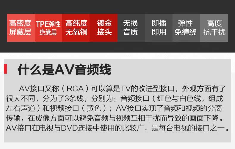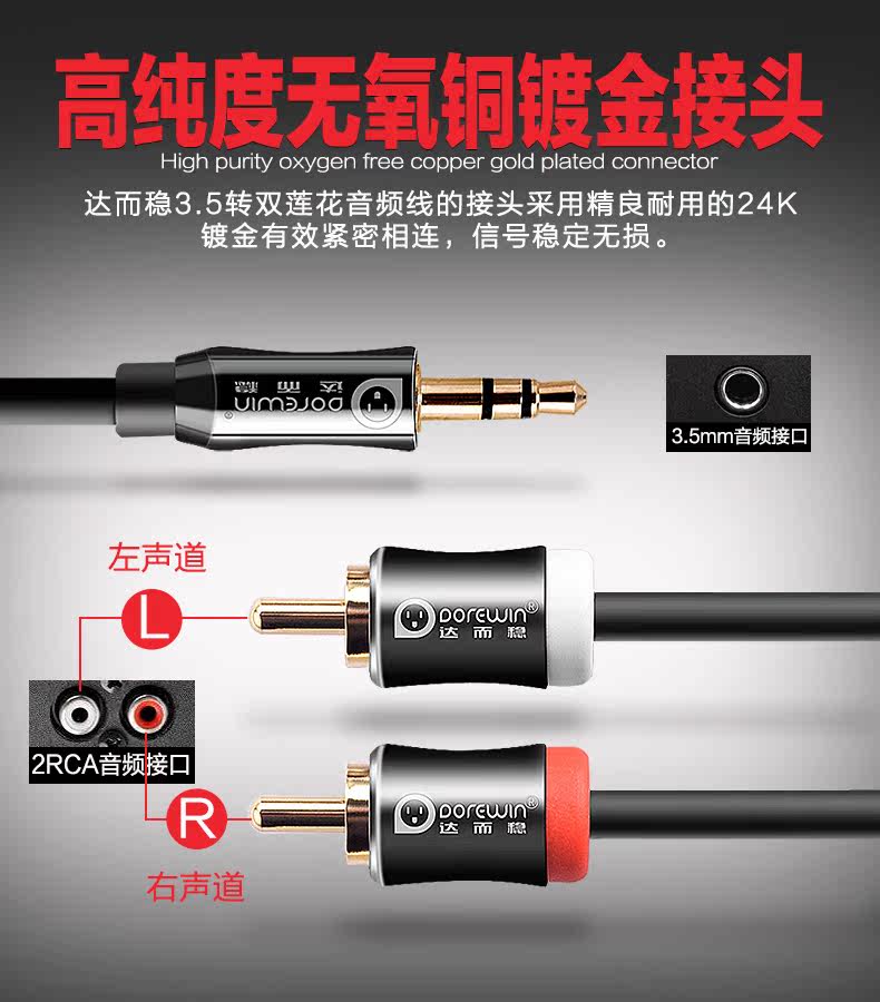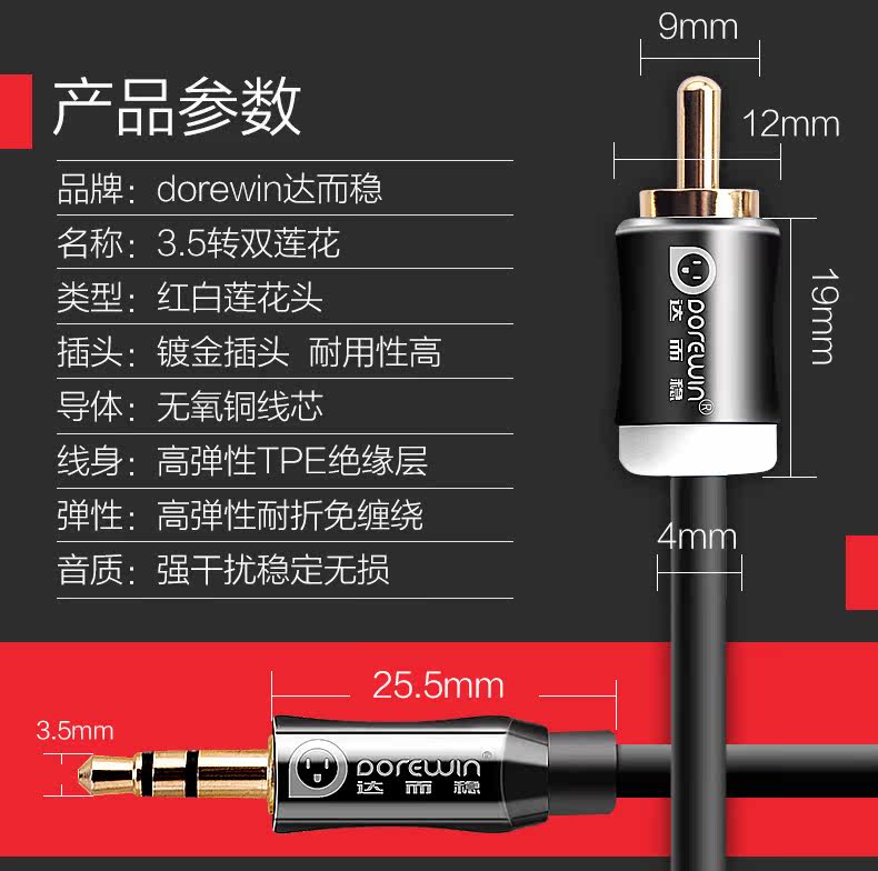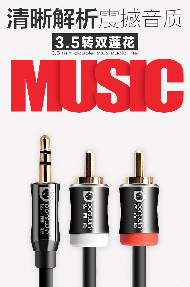 Dorewin/达而稳 av3 3.5mm转双莲花音频线一分二音响线音频连接线