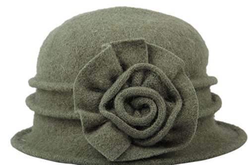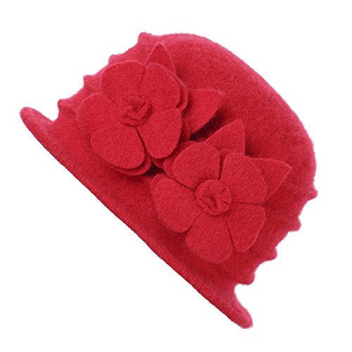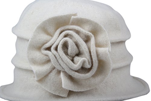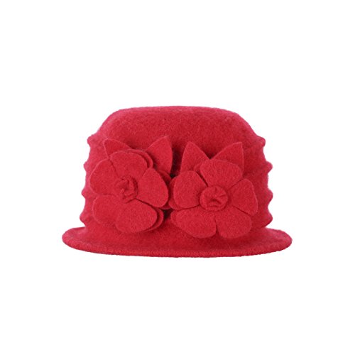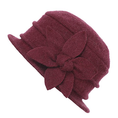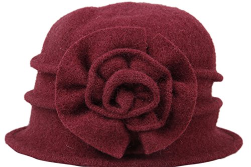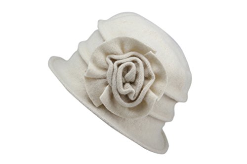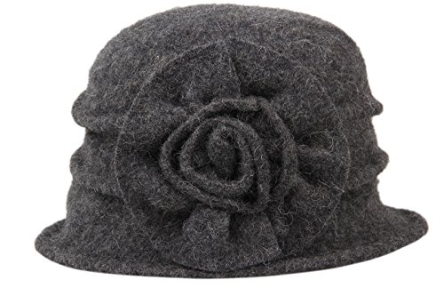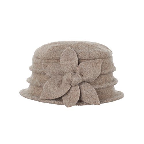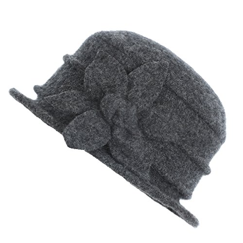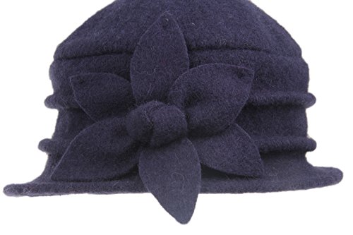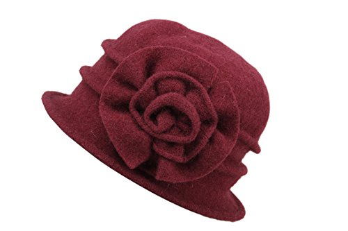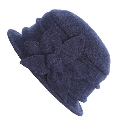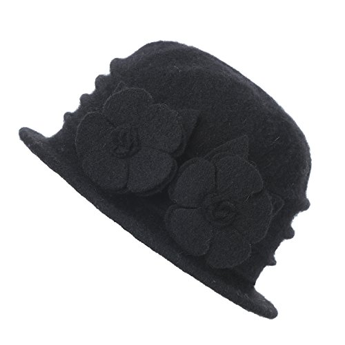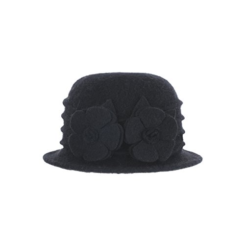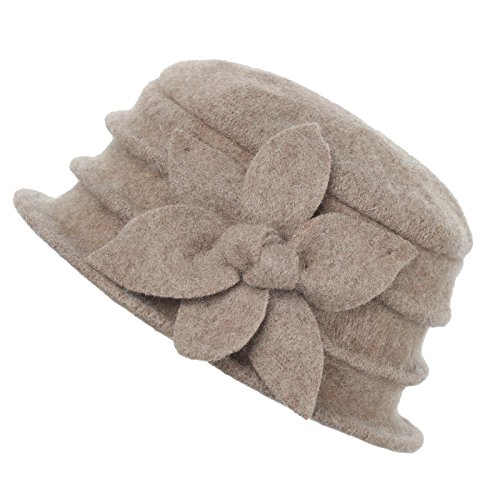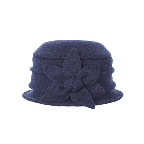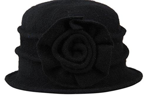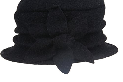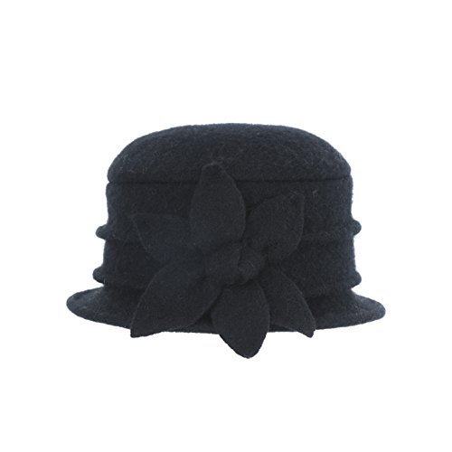 | Dantiya Women's Winter Classic Wool Cloche Bucket Hat Warm Cap with Flower Accent |