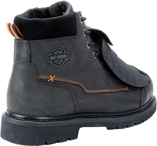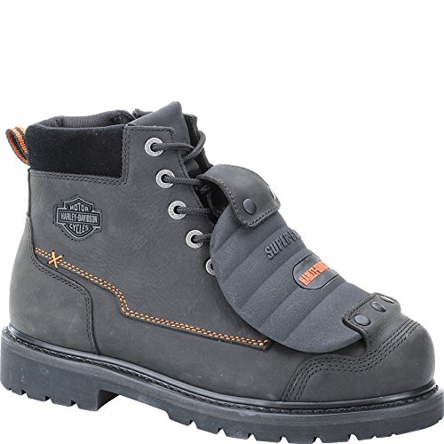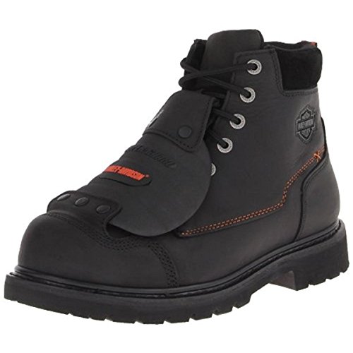 Studio : Harley-Davidson Publisher : Harley-Davidson Binding : Apparel Product Description Full grain leather upper. Full length cushion sock lining. Shaft height: 5.5", Heel height: 1.25". Oil-resistant rubber outsole. Goodyear® welt construction. ASTM F2413-11 M I/75 C/75 EH compliant with individually fitting left and right safety toe caps and external metatarsal guard. HD9000 0