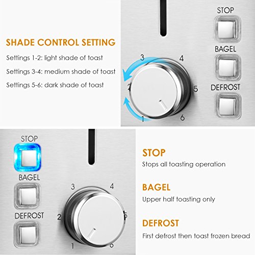 ✔ 6 Toast Shade Settings - 6 adjustable settings offers a full range of browning options to allow you to choose your favorite one.