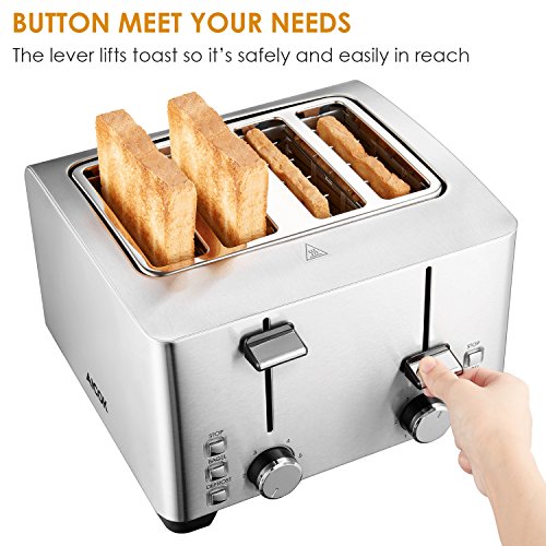 ✔ 4 Wide Slots - Easily fit all types of toasted treats, such as bagels, breads. You can toast 4 slices of bread or bagels once. With 1500W, you can enjoy a fast and healthy breakfast.