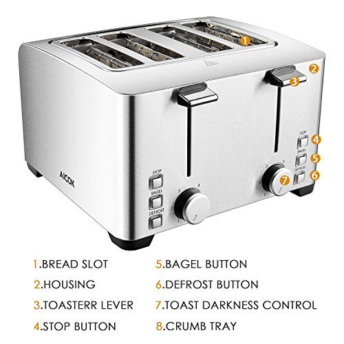 ✔ Bagel, Defrost and Cancel Functions - Defrost frozen bread in one easy step, toast bagels or stop toasting anytime. It is easy to control.