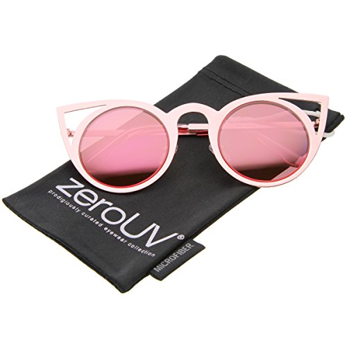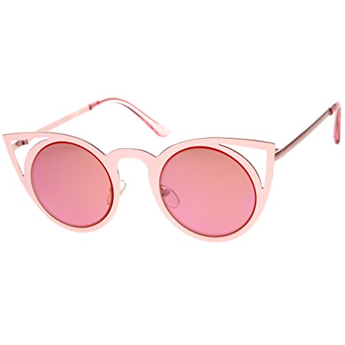zeroUV - Womens Laser Cut Open Metal Mirror Lens Round Cat Eye Sunglasses 48mm (Pink / Pink Mirror)
