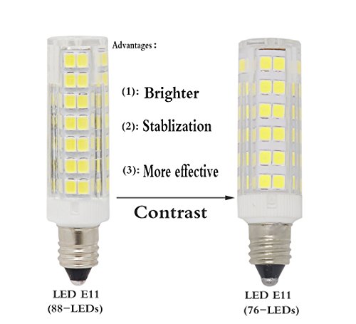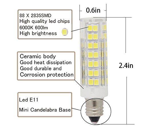 - BRIGHTNESS: 88 chips. Brighter than general LED E11. New LED E11 provide 600lm comfortable 6000k daylight white. Replace 60w halogen bulb by 6.5w LED.