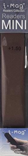 I-Mag Mini Slim Metal Spring Hinge Reading Glasses with Slide Open Hard Case (Brown, 1.50)