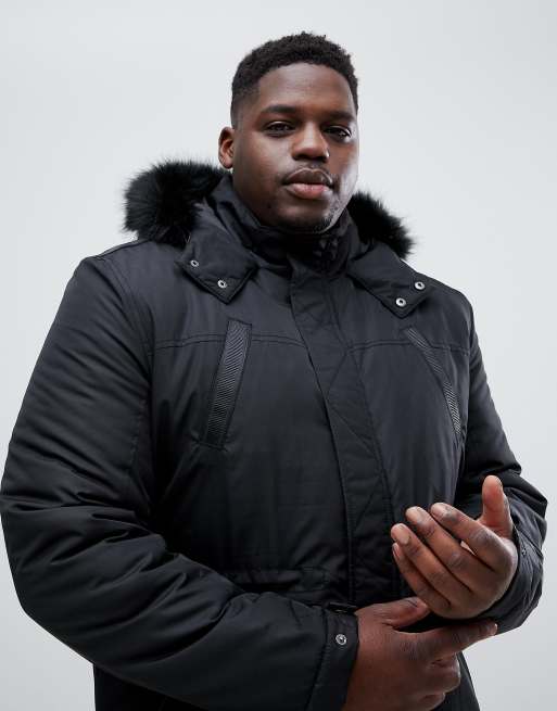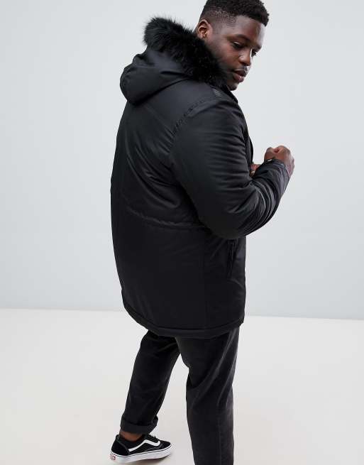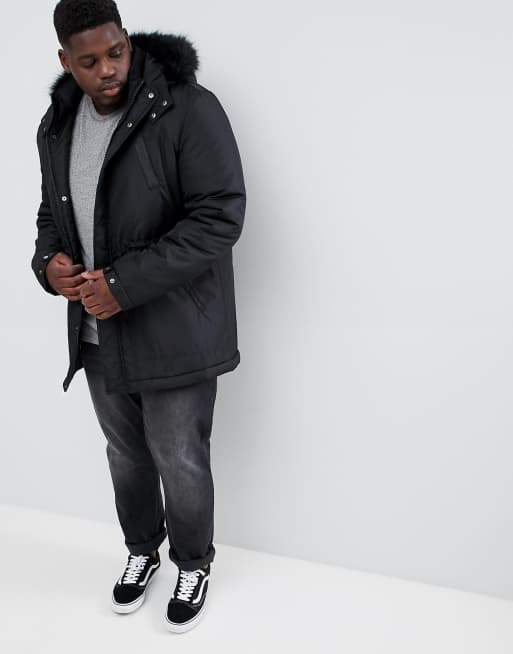 ASOS DESIGN Plus parka jacket with faux fur trim in black