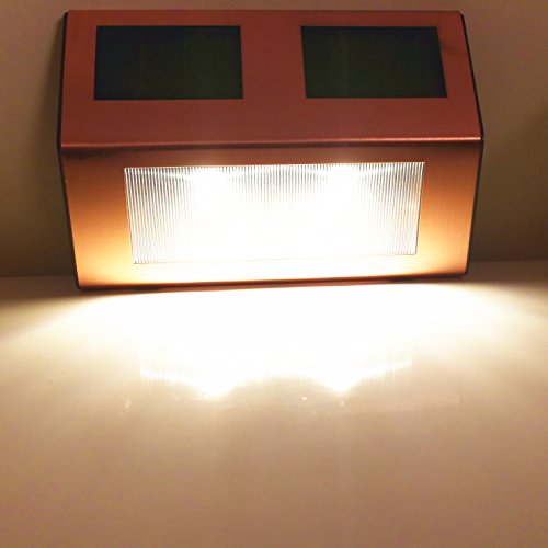 Solar Lights Outdoor Pathway Decorative Garden Waterproof Deck Light Upgraded Dual Warm White LED Brgiht Decorations Step Lamp Sogrand Copper Fence Lamp for Patio Outside Landscape Walkway Stair 4Pack