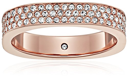 Covered in sparkling pave crystals, this rose gold-tone Michael Kors ring features a logo plaque with the iconic MK logo for an extra pop of style
