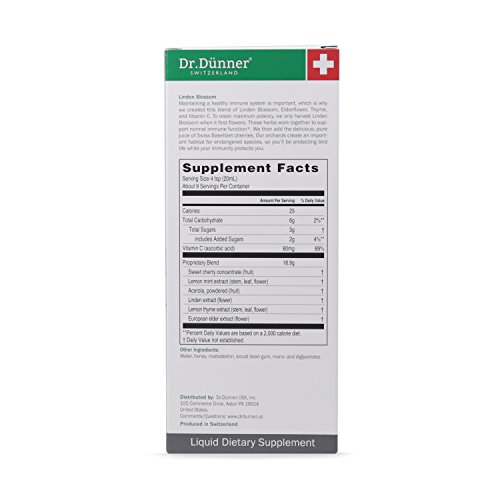 -. Feature : LINDEN BLOSSOM - Linden Blossom is known for its anti-inflammatory and antioxidant properties, while Thyme is known to contain antibacterial and antifungal qualities that help the body fight infection. This formula is a powerful natural alternative, giving the body a much-needed boost when defenses are down / NATURAL & ORGANIC INGREDIENTS - Dr.Dünner sets a high standard for the quality of the ingredients that we give our customers, which is why our wild-grown Linden Blossom is harvested at the first flower every year, to retain maximum potency and to give you the most out of each bottle / NO ARTIFICIAL ADDITIVES - Linden Blossom contains no artificial colors, flavors, or preservatives. All of our products are gluten-free, lactose-free, and non-GMO / NATURE IS BOSS - We are uncompromising with our standard to premium, high-quality ingredients and our partnerships with our trusted, local farmers. This means that our supply any given year is driven as much by the climate as it is demand / SUSTAINABILITY - We are on the way to becoming a zero-emission company with our headquarters powered entirely by renewable resources. All of our ingredients are sustainably sourced from local farmers that we trust and know, while our products are packaged with materials from responsibly managed forests that provide environmental, social, and economic benefits to their communities