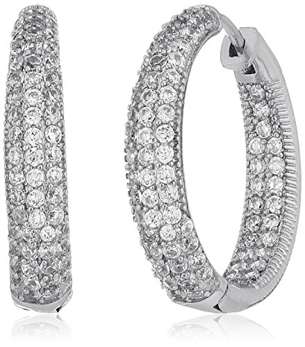 Piatella 18k White Gold Plated Simulated Diamond Hoop Earrings