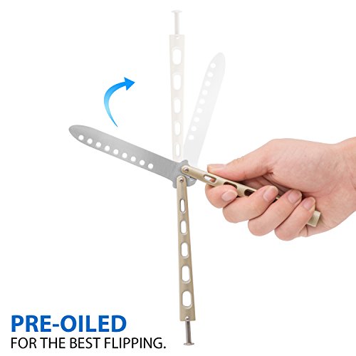 Smooth flipping: 5oz,4”1/2 blade makes our butterfly knife perfectly weight balanced for smooth slipping; meanwhile pre-oiled the butterfly knife before shipping is big plus to get flipping fun.