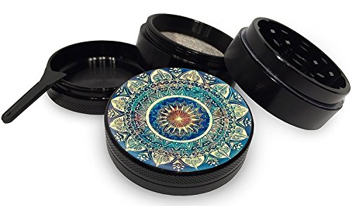 Blue Mandala Black Herb Grinder 4 Piece Aerospace Aluminum Metal Grinder 2.0" 2 inch wide