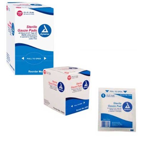 -. Title : Gauze Pads Sterile Singles 3"x3" 12 Ply - Dynarex 3353