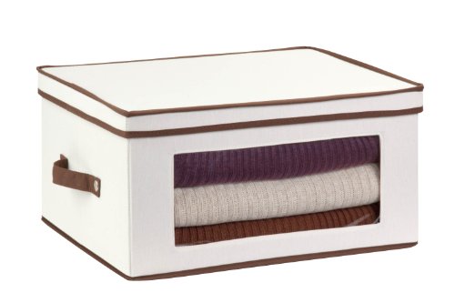 - Feature : Features viewing window for quick identification, never guess what is stored / Gentle and smooth handles offer convenient transfer / Soft storage units, will not scratch or scuff floors or walls / Off-white color with brown trimming, looks and works great in bathrooms, bedrooms, and offices / Use the storage box to organize everything from bath towels, dishes, food, shoes, and more