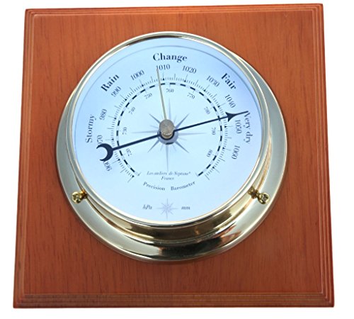 -. Brand : Thorness -. Color : Brass -. EAN : 5055595835181 -. Feature : This traditional brass Barometer will always let you be ahead of the weather forecasters. / The barometer was invented back in the 17th century for laboratory use, and since then has become a popular household item. / Increasing pressure indicates that the weather will be getting better with more warmer and dryer conditions. / Decreasing pressure indicates that the weather is set to worsen - with cloudy days and rainfall. Quick drops in pressure can signify that a storm is imminent in the next several hours. / Measurements - Plaque measures approx (h) 6" x (l) 6" x (d) 6" , the Barometer is 4" in diameter -. Label : Thorness -. Manufacturer : Thorness -. MPN : 12669 -. NumberOfItems : 1 -. PackageQuantity : 1 -. PartNumber : 12669 -. ProductGroup : Lawn & Patio -. ProductTypeName : KITCHEN -. Publisher : Thorness -. Studio : Thorness -. Title : Traditional brass Barometer mounted on varnished wooden plaque