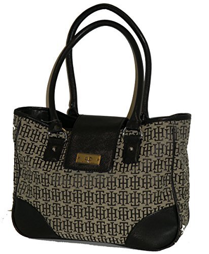 Tommy Hilfiger E/W Shopper Tote Handbag Purse Black Multi