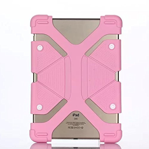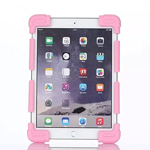 8.9-12 inch Tablet Back Case, Dteck(TM) Universal Silicone Case Multi-Angle Portable Stand [Corner Protector] Rugged Body Back Cover with Bracket for All 8.9-12 inch Apple Samsung Tablets (01 Pink)