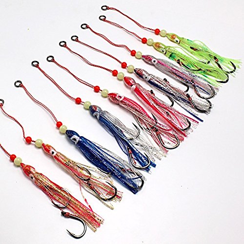 태그 re연 조릿대형의 교환용 낙지 베이트 더블 훅 타입,야광 비즈부입니다.컬러는 전5색의《아소토》세트입니다.대형 회유어나 갈치,근물고기 등의 낚시에 위력을 발휘합니다.낙지 베이트:전장 약11.5cm