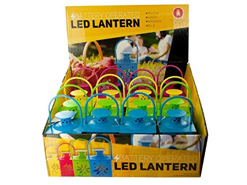 -. Feature : Decorative Flickering LED Lantern Countertop Display, 16 Piece / Great as a garden accent, for outdoor activities, as an emergency light and more, this Decorative / A flameless, flickering tea light candle sits inside and is operated with an on/off switch / Comes in assorted styles: blue butterfly, green flower, yellow flower and pink butterfly / Operates with an included cell battery