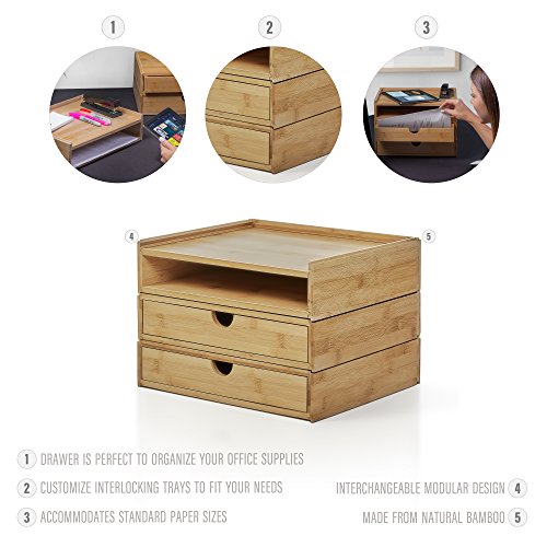 Prosumer's Choice 3-Tier Modular Bamboo Desk Organizer with Letter-Size Drawers