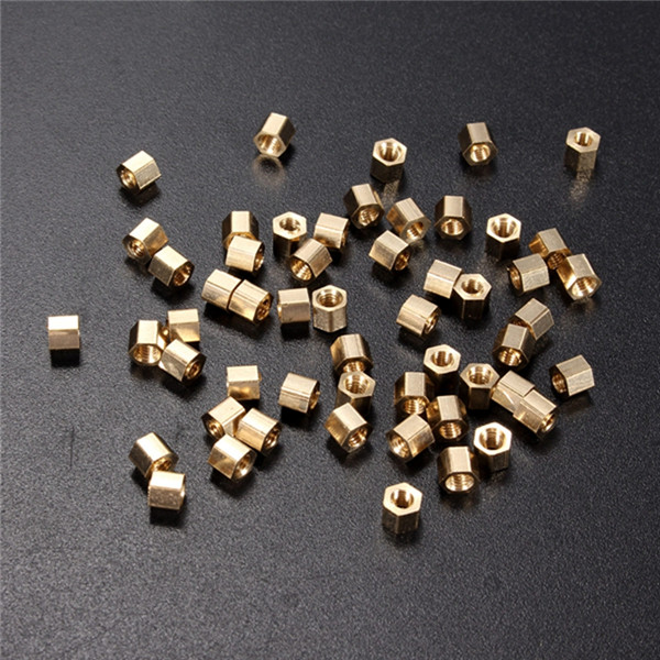 50 pcs M3 Hexagonal net nut Female brass Standoff/Spacer type, with gold tone plated brass construction. Hexagonal threaded spacers are ideal for mounting between PCB circuit boards and machine boards.