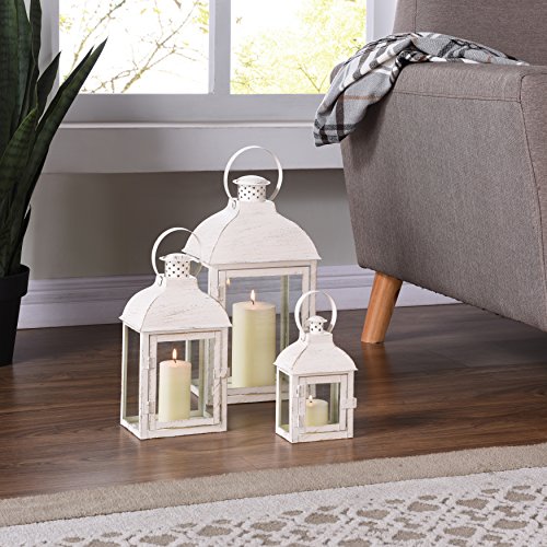 -. Feature : Dimensions: Lg: 17 inches high x 8 1/8 inches wide x 5 3/4 inches deep Md: 12 inches high x 6 1/8 inches wide x 4 1/4 inches deep Sm: 8 3/4 inches high x 4 3/8 inches wide x 3 inches deep / Set includes 3 lanterns: Small, Medium and Large / Good for indoor or outdoor use. / For use with pillar candles (not included)