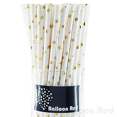 Biodegradable Paper Drinking Straws (Premium Quality), Pack of 50, Stars - Metallic Glossy Gold