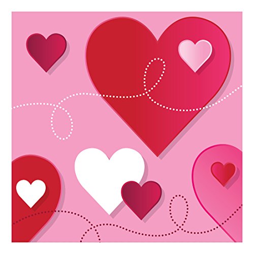 Creative Converting 650904 16 Count Paper Beverage Napkins, Hearts and Swirls
