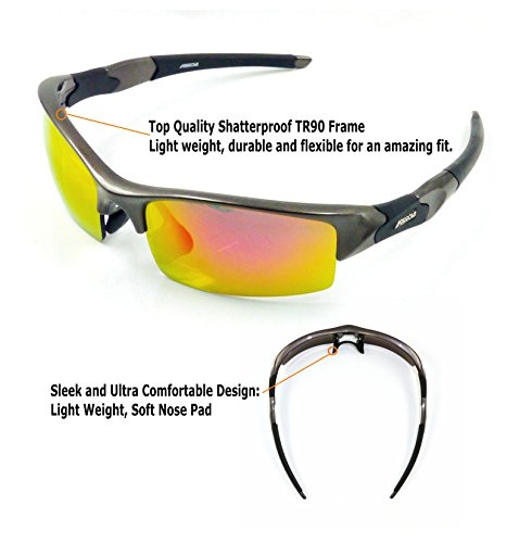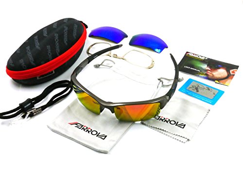 - Feature : Top Quality Shatterproof TR90 Frame - Light weight, durable and flexible for an amazing fit. TR90 is the latest sunglasses materials that brings more flexibility and durability than Polycarbonate Frame / 2 Set of Shatterproof PC Lens: Main Lenses are Premium Polarized PC Lenses with REVO plated Film at the front & AR Plated Film at the back to reduce reflection of light from the back, the Extra Set of Lenses are Non-Polarized PC Lenses with REVO Plated Colorful Film Dark Lens. / 100% UVA and UVB Protection Coating, The Main Polarized Lenses are Injected and Decentered, UV400 Protection, Anti-Scratch coating and high velocity impact resistant. / Sleek and Ultra Comfortable Design: Light Weight, Soft Nose Pad, ANTI-SWEAT BAR Comfortable to Wear for long time. Built-in Optical Frame is optional for myopia. Tailor-made optical lenses can be inserted based on personal vision configuration. Special design, easy to disassemble, let myopia also can wear professional sports glasses. / Package Includes: 1*FARROVA Extreme TR90 Frame, 2*Lenses, 1*Clean Cloth & Pouch, 1* Built-in Optical Frame, 1*Neck strap, 1* Porlarized Lens Test Card, 1*Soft Case and Manual. Lifetime Breakage Warranty on Frame & Lens.