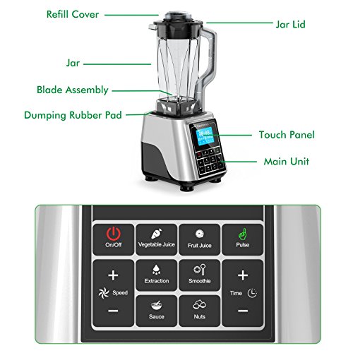 LED digital display & LED Touch Control: beautiful and elegant. One step to make vegetable juice, fruit juice, smoothie, nuts, extraction and milkshake; special inching design enables faster and more convenient food processing