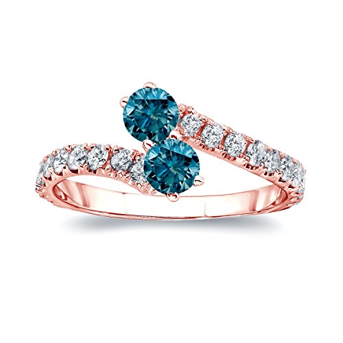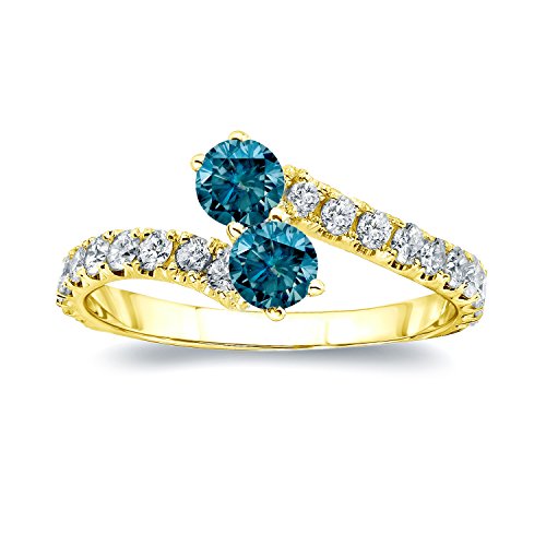 -. Title : 14k Gold Round-cut Two-stone Blue Diamond Engagement Ring (1/2 cttw, Blue, H-I, I1-I2) Size 4-9