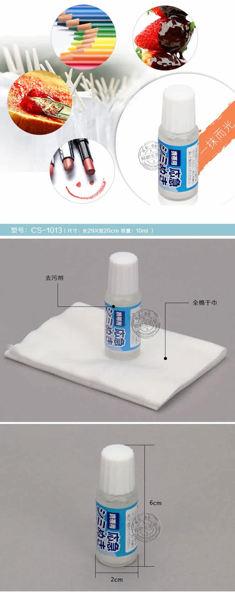 [Imported] portable device containing a 10 ml bottle of detergent, a white dry towel. As long as the stains on a small drip drip dry towel wipe grease stains go bare oh.