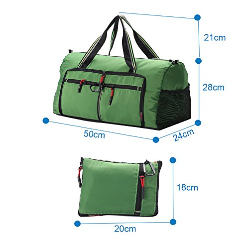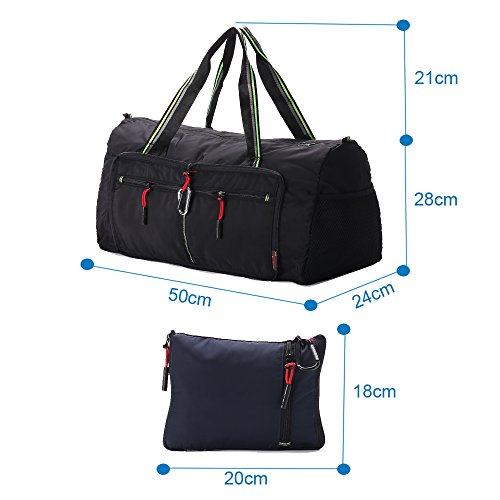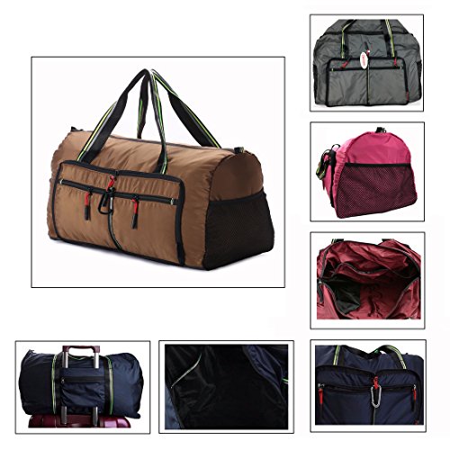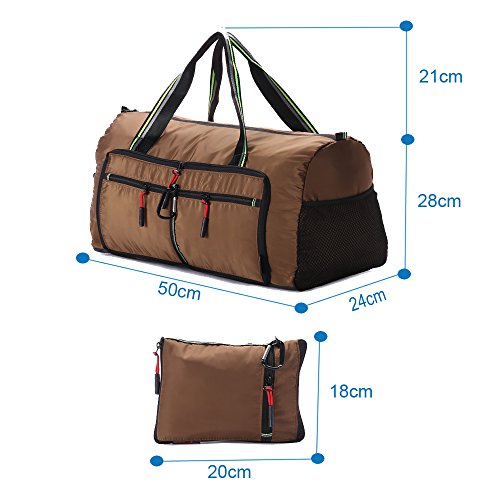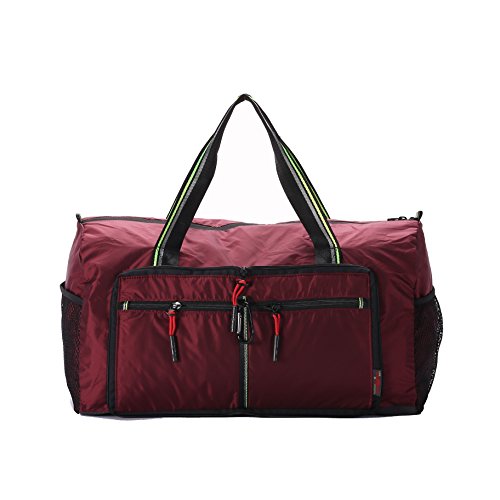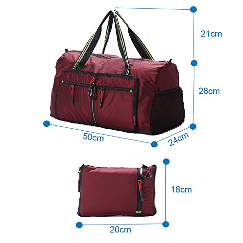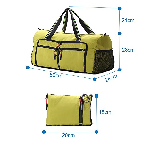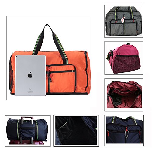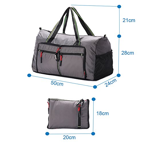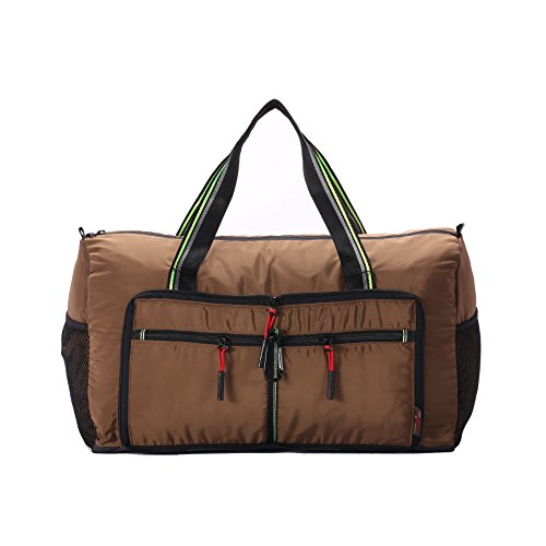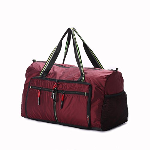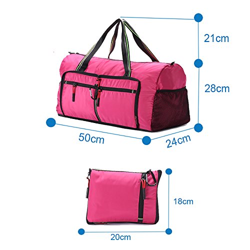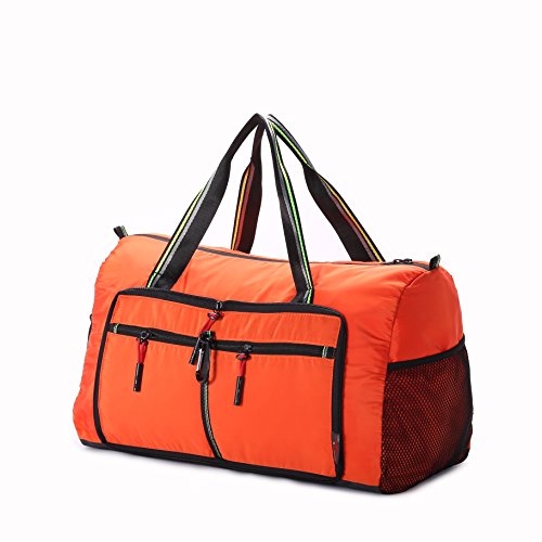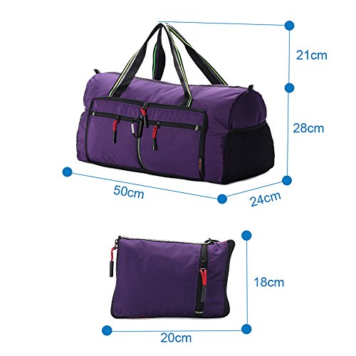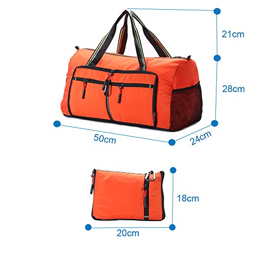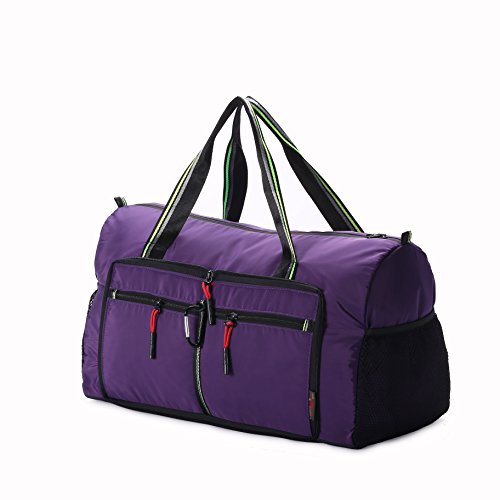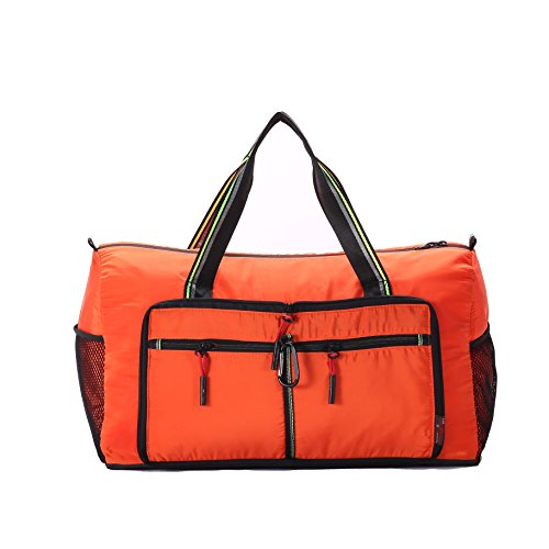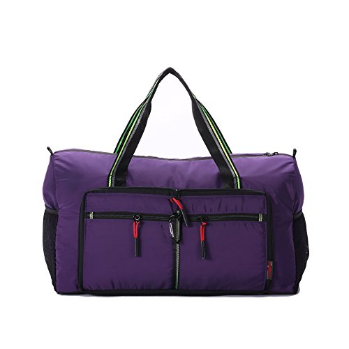 Product Description Material: Nylon Interior material: Polyester Color: Purple, Pink, Green, Orange, Black, Red, Grey, Brown, Olivine, Dark Blue Size: 50*24*28cm/19.7'*9.4'*11' Weight: 0.32kg/0.7lb Made from nylon, ripstop fabric that resists wear and tear.. Large capacity. Multiple pockets are usable, folded or unfolded. Can carry hands or shoulders. Fashionable colours for travel, sports and everyday life.
