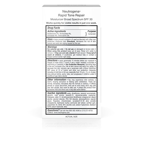 Neutrogena Rapid Tone Repair Moisturizer With Retinol, Broad Spectrum Spf 30 Sunscreen, Travel Size 1 Fl. Oz.