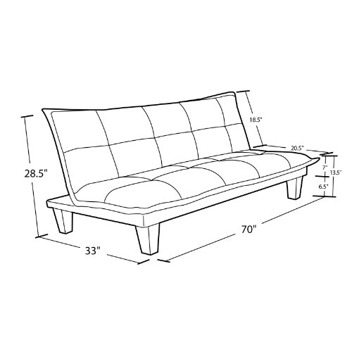 - Feature : Microfiber upholstery for easy clean / Advanced Click-Clack Mechanism: ideal for sitting, lounging and sleeping / The futon frame and mattress are one piece. / Sleeper Dimensions (W x D x H): 70" x 39" x 13.5" / Weight limit: 600 lbs. / This item is eligible for free replacement parts. Contact Amazon Customer Service for more information.