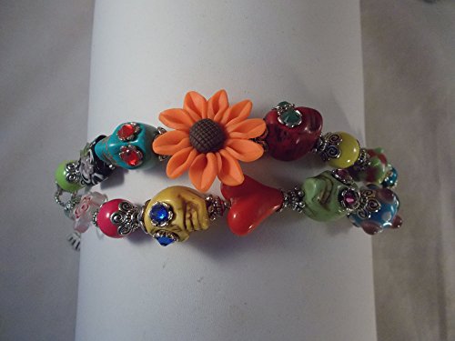 -. Title : Chunky Day of the Dead Bracelet with Howlite Turquoise Sugar Skull, Lampwork Beads and Swarovski Crystal